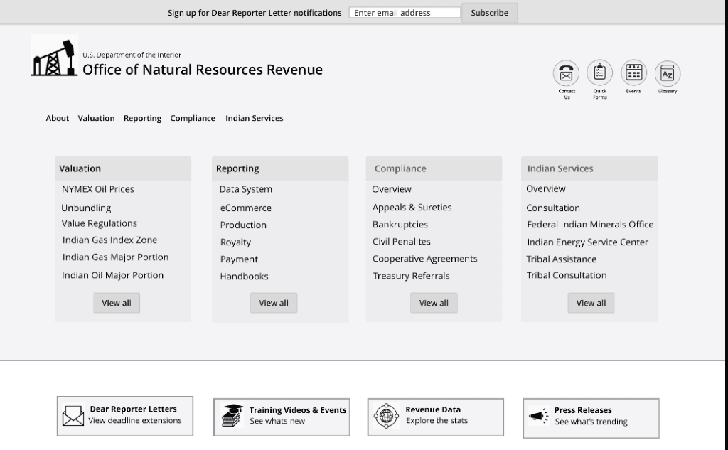 Our organization’s leaders made the decision that both our public websites should be managed by the same team. So, our team inherited ownership of the onrr.gov site in March. So far, we’ve made progress on understanding the site’s users and documenting its current state, and what we’ve learned working on the Natural Resources Revenue Data (NRRD) site will serve as our roadmap as we look to enhance the user experience on onrr.gov.