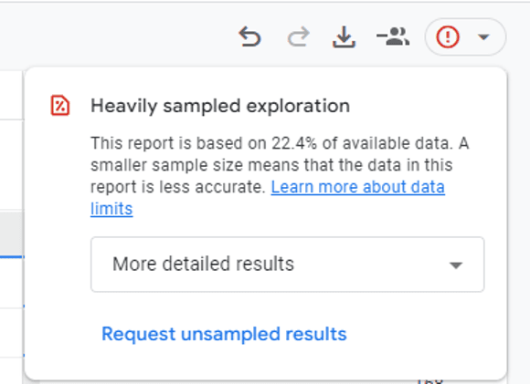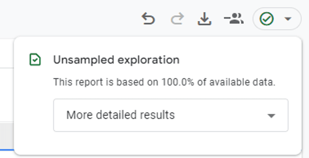 We would have to constantly select “More detailed results” to make sure our report was an unsampled exploration and based on 100% of the available data.