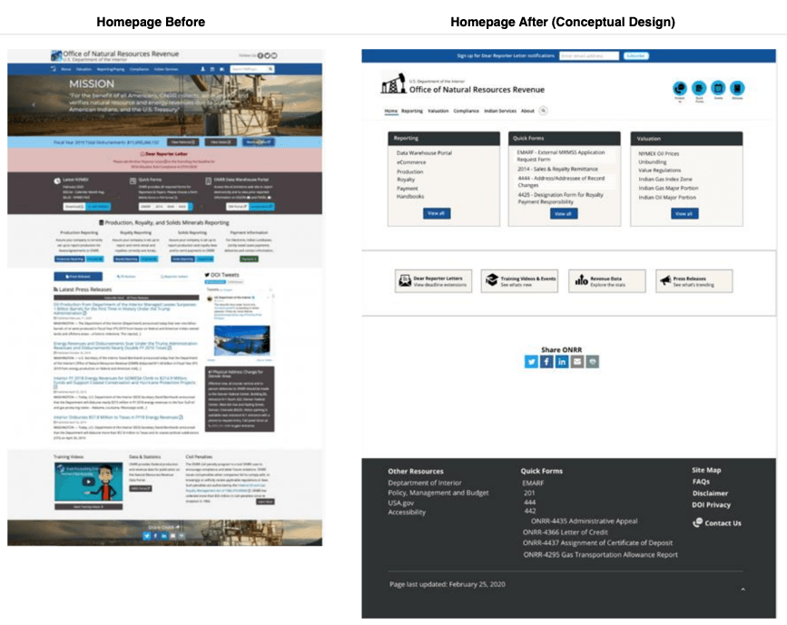 When I learned I had been selected for the user experience (UX) apprenticeship, I was incredibly excited about experiencing what it is like working within a federal government agency. Admittedly, my first impression of the material I’d be working with was that it was a little dry, but it wasn’t long after a deep exploration into ONRR.gov that I was hooked. The overall structure and navigation of the site needed some help and I was motivated by the opportunity it presented to design for impact with meaningful, evidence-based solutions. But most importantly, I wanted my work to improve the lives of those who interface with the product on an ongoing basis.