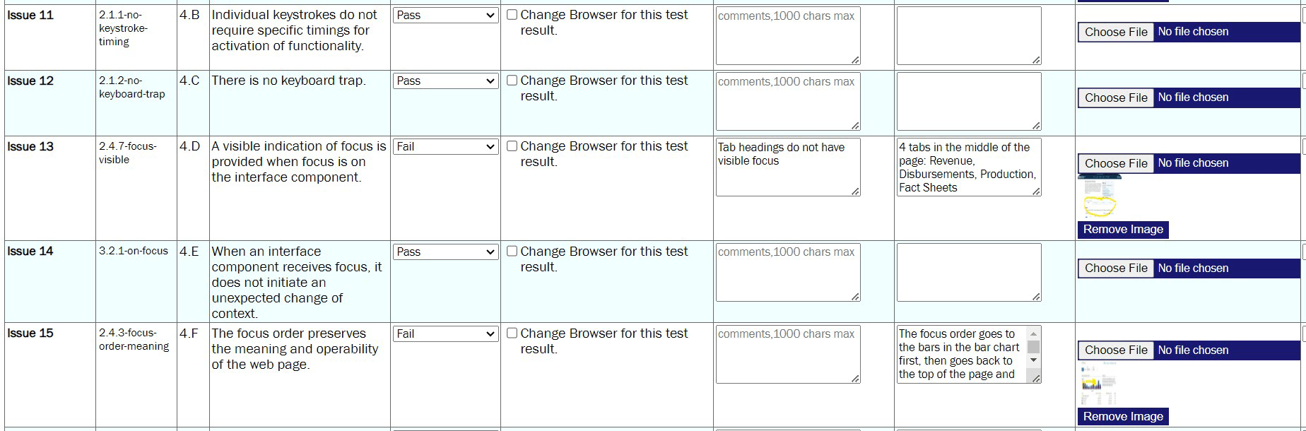 The training includes guidance for sharing the results with others, making it easy to identify and fix the failed test conditions. We put the ACRT results in a spreadsheet, making it easier for our team to review the information. Many automated testing tools provide a score or ranking that helps us prioritize how we can work through fixes. Since it’s all manual, contextual, and done on a page-by-page basis, it makes sense Trusted Tester and ACRT do not provide a compliance score or ranking. Our spreadsheet made it easy to look at the violations holistically and work together to assign priority to the issues. This is done by considering how many web pages each issue affects and the estimated difficulty level of the fix.